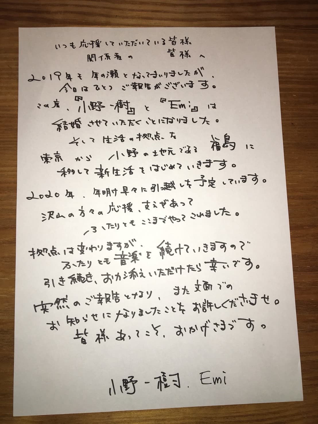 この度、結婚のご報告をさせて頂きました。