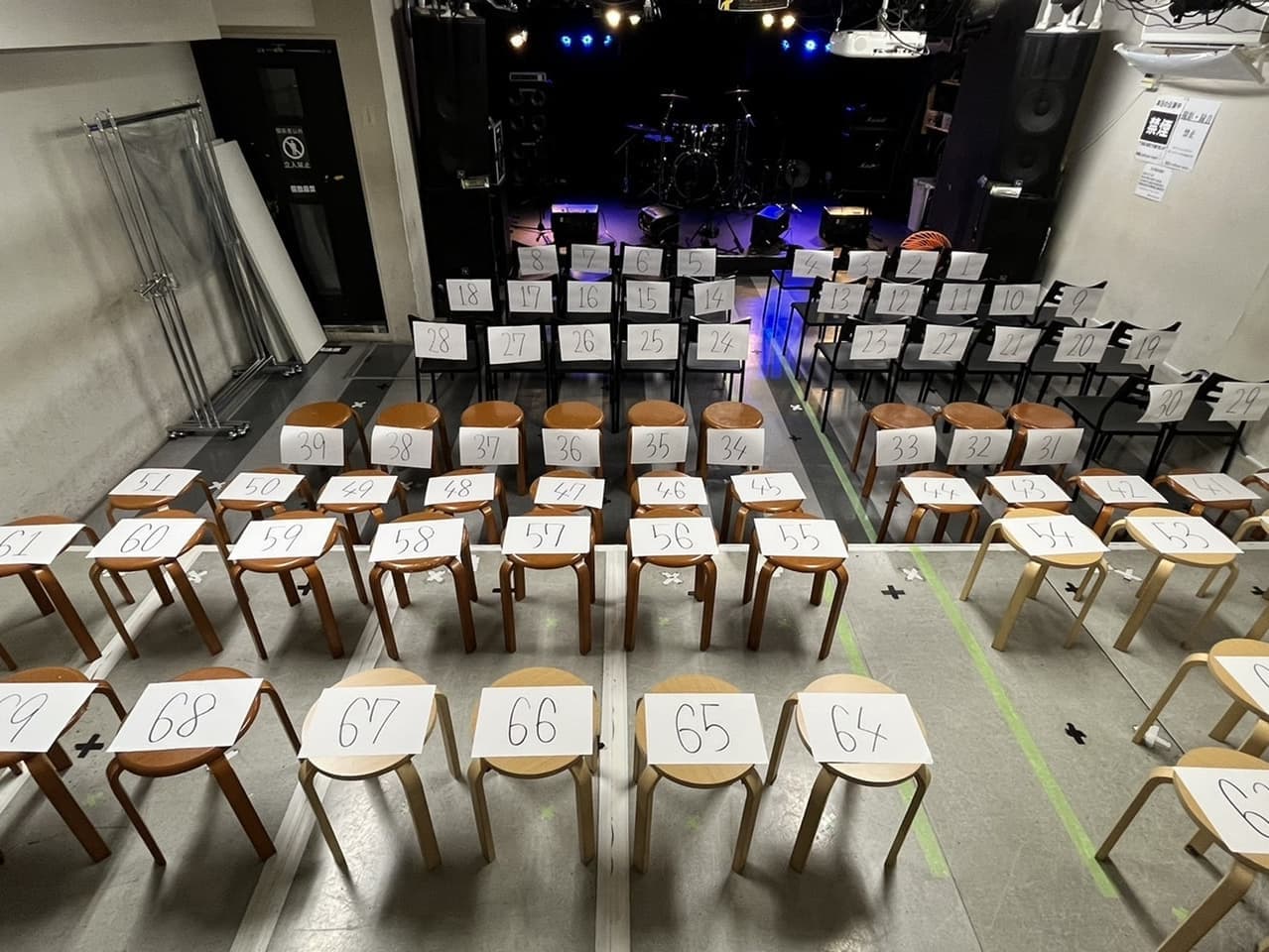スタンディング:120人 椅子:50~70席(椅子数MAX70脚)