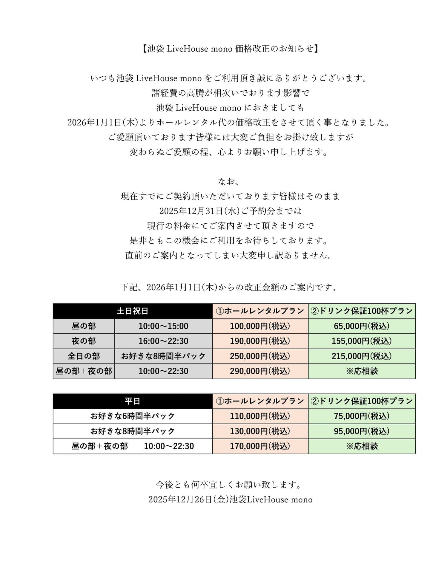 詳しくは>>https://live-mono.com/ikebukuro/system/