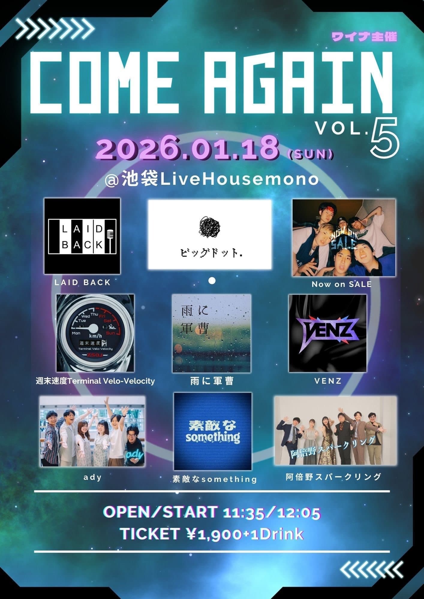 ワイナ主催ライブ『COME AGAIN vol.5』