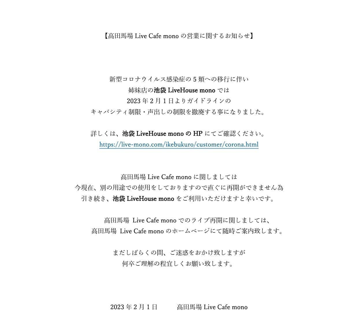 ☆お問い合わせメールは⇒   高田馬場 LiveCafe mono